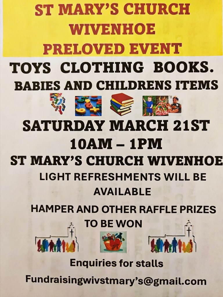 If you have items to donate like Children’s Books, Toys and Clothing (not furniture) please contact Heather by TEXT 07956 024041 or email the team on fundraisingwivstmarys@gmail.com