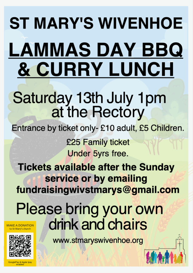 Saturday 13 July at 1pm in the Rectory garden. Bring own drinks and chairs. £10 ticket for adults.